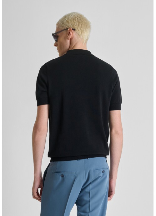 ANTONY MORATO REGULAR-FIT SHORT-SLEEVED POLO SHIRT IN A SOFT COTTON BLEND WITH ZIP AND PRINT - BLACK